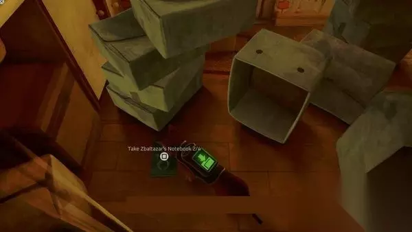 在这个房间里,跳到两堆白色的盒子上,里面展示了Zbaltazar的笔记本2/4。
