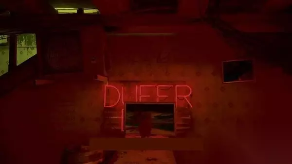下楼去酒吧。如果您已经知道代码,这是可选的,但您可以从DUFER条形标志上方与图片交互以了解它,显示代码1-2-8-3,用于稍后打开保险箱。