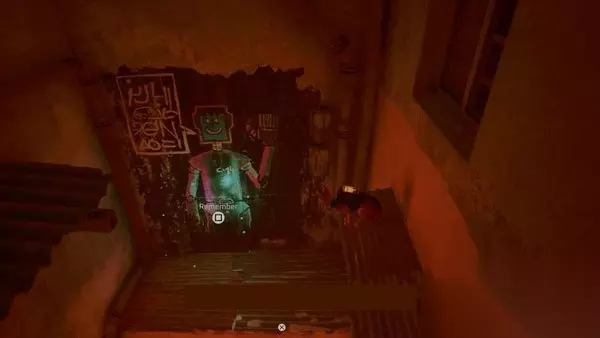 然后你可以下降到较低的区域,在那里你可以在墙上发现更多的涂鸦。与它交互以获得6/7的内存。