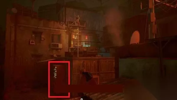 回到酒吧前,然后朝着该区域的入口看。在右边,你可以看到两栋建筑之间有一道栅栏,你可以跳过。然后你可以立即向左看,然后跳到木梁上到达另一台自动售货机,让你拿起能量饮料2。