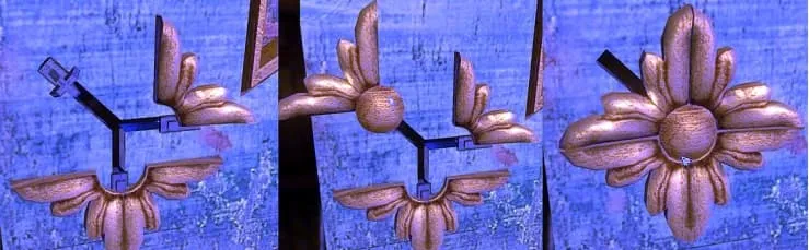 将木制装饰品的部件拖到这里,然后将三块部件滑动到一起,组成一朵花。