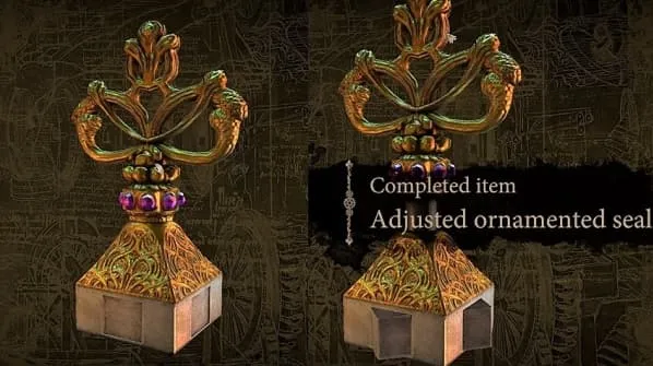 检查物品栏中的封印,旋转中间部分,使箭头对齐,形成一个三辐封印。