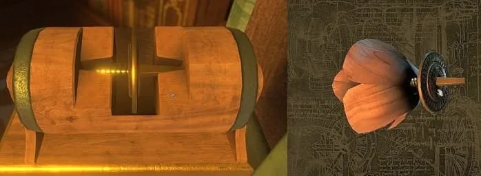 查看象牙盒顶部,插入小钥匙,然后旋转它。