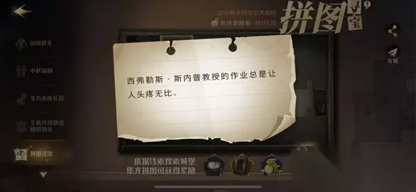 西弗勒斯斯内普教授的作业总是让人头疼无比拼图寻宝攻略就介绍到这里了,小伙伴们赶紧去完成任务吧~更多精彩内容可以多多关注233乐园网,我们将为你带来更多热门好玩的游戏资讯和攻略内容!