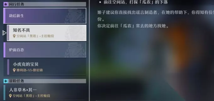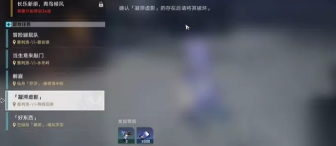 开启步骤: 1、首先是还没有凝滞虚影的任务,然后我们是得去尝试完成其他的任务,然后将这个凝滞虚影任务出发。