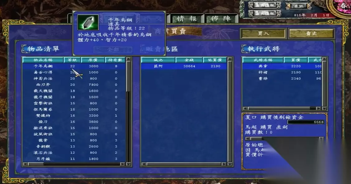 神铁最常用的地方就是武器锻造了,像孔雀刺、乾坤圈这些高级装备都需要它作为核心材料。平时在野外遇到沉船事件时一定要去打捞,虽然概率不高但确实能获得神铁。建议在打捞前先存档,这样没出好东西可以读档重来,省时又省力。占领特定城池后开发度达标,商店里才会出现神铁售卖。所以平时要注意经营自己的领地,把城池建设好。另外加入联盟和其他玩家交易也是个不错的选择,互相帮助才能更快集齐所需材料。