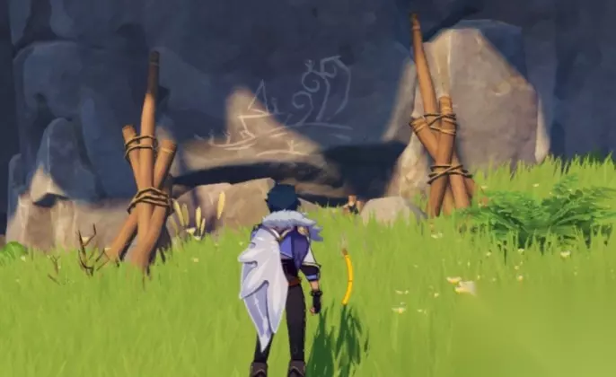 原神寻找其他壁画任务攻略 第1处壁画:破破岛的壁画 破破岛传送锚点处的西南方向,箭头所在处位于该处山体最低处的山洞内; 未解锁山洞需要先使用羽球打破墙壁