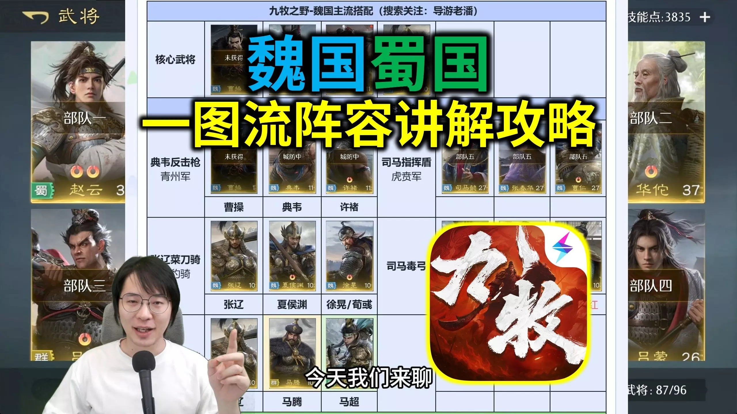 T0P1:赵子龙+诸葛孔明+刘关张三兄弟阵容分析:当前版本最强势的蜀国巅峰战力阵容,赵子龙作为突进型武将,可以快速收割敌人的后排输出武将,同时诸葛孔明作为智力型法师,对于团队的属性加持与法术攻击都非常可观,擅长群攻压血线,刘关张三兄弟可以组成羁绊“桃园三结义”,增加最大血量与百分比攻击。 TOP2:孙策+甘宁+孙尚香+周瑜+太史慈阵容分析:吴国阵容最适用的阵容组成,甘宁作为游戏前三坦克型武将,其被动涅繁可以让他抗住巨额的伤害,并可以复活一次,而且周瑜太史慈可以打出高额的物理+法术混合伤害,加上孙策的被动增益与孙尚香的辅助,这套阵容可以说是能扛能打。 TOP3:曹操+郭嘉+张辽+夏侯惊(夏侯渊)+典韦阵容分析:典韦具有很高的物理攻击加成,并可与曹操构成羁绊“贴身侍卫”增加百分比双抗与魏国武将攻击up,同时郭嘉与张辽可以完成场上控制与法术伤害的输出,最后由夏侯惊或夏侯渊完成收割,阵容成型。