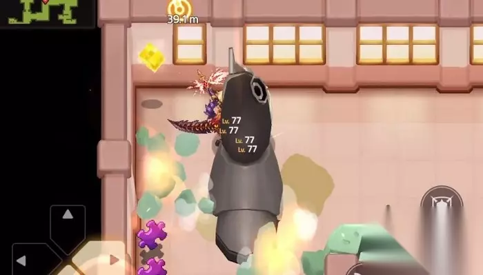 随后快速逃离这里,一边跑一边会有红色的圈圈出现,会有物品从天而降。清理掉一些杂鱼,面对boss书呆子王玛莉安的机甲大boss,轻松搞定。