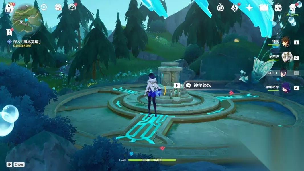 2、之后我们一路跟随指引来到幽林雾道的祭坛处,并上前对话。