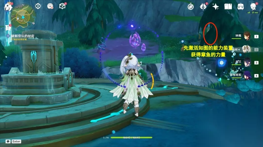 4、到达图中地点之后我们将视角朝着我们的左手边方向看,随后我们需要吸收前方柱子上的力量。
