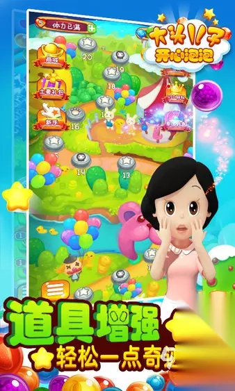 跑酷过程中可收集磁铁与护盾道具,磁铁能自动吸附沿途金币,帮助积累更多资源用于兑换角色皮肤;护盾则可在碰撞时提供一次保护,避免失败。此外还有加速鞋等多种辅助道具,全面提升闯关体验。游戏地图涵盖城市街道与丛林森林等多个主题场景,视觉风格多变,带来持续的新鲜感。 手机扫码下载233乐园APP预约 预约订阅最新动态 优先233乐园APP下载 5、《大头儿子开心泡泡》