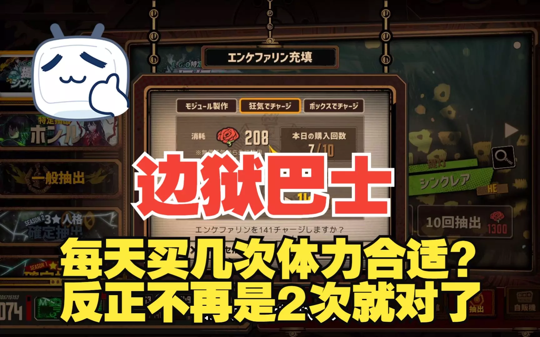每日买几次取决于你自己,如果你卡池就差几个买满十次都不亏 如果你卡池基本没有就是7次 值得一提是按照一次购买140体力和购买通行证来计算的,你一次体力除以140…