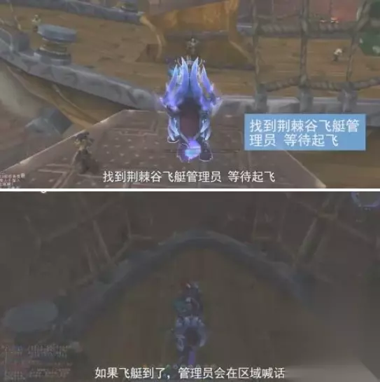 4、找到荆棘谷飞艇管理员,等待起飞; 5、如果飞艇到了,管理员会在昆祝区域喊话; 6、下飞艇之后,找到卡拉赞,飞过去,这样就可以了。