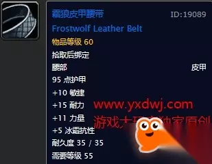 12敏12耐12智5冰抗,萨满专用,猎人也可以带,纯白字属性腰带。