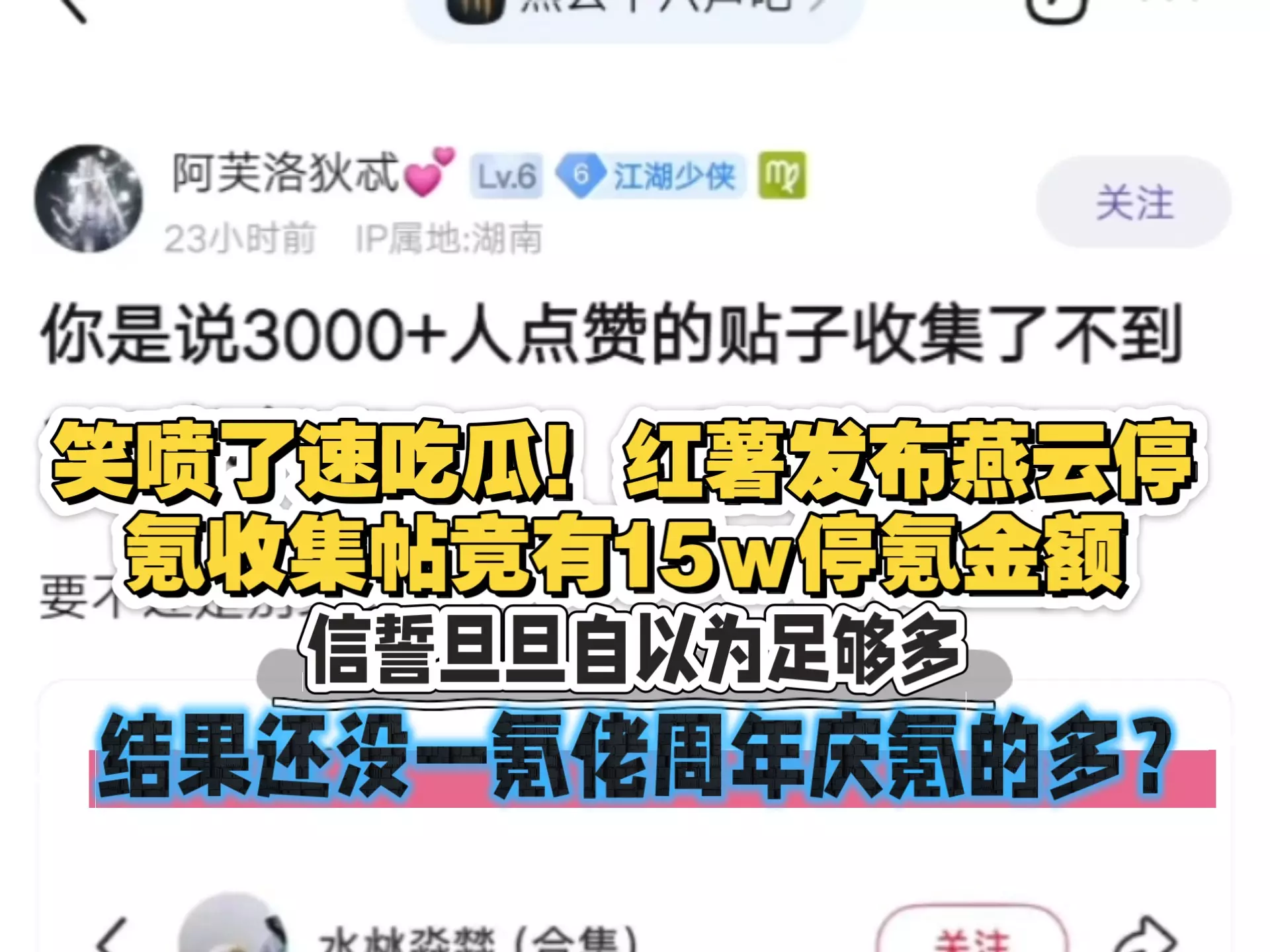 笑喷了!红薯燕云停氪收集帖只收集到了十五万停氪金额?还没一位巨佬周年庆氪的多?