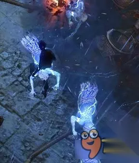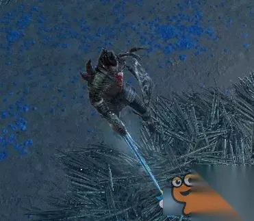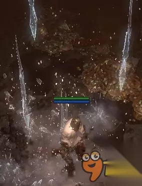 技能二:丢冰球 (瓦尔超灵扔出一堆碎冰碴子,踩到后因为扎脚而被冰缓。)