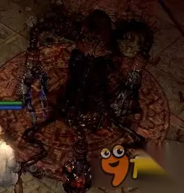 对抗方法:这玩意我感觉丑得能排前几,攻击能力并不强,主要是这个房间烦。她这个房间全都铺满了诅咒,分别是时间,软弱,衰弱,站在最中间能同时受到三个诅咒哦~属性被大幅度削弱的你只能慢慢来了,如果有个解诅咒药水是非常好的。 (细心观察会发现,这玩意死了后,他坐着的锅会反过来,然后会从下面跳出来一个蛤蟆,也就是说这玩意其实是个蛤蟆精是吧。) 每一种属性对应一种抗性,这三个怪物很奇怪,只有对应属性的抗性非常高,其他的抗性没有,所以只有一种属性伤害的BD在打对应抗性的BOSS的时候还是有点麻烦的。 梦魇玛拉凯 最后的大BOSS,剧情最强没有之一,整个BOSS战分为两部分。 第一部分(黑核) 打完前面三个小弟后,我们跟着派蒂进入黑核。 左下角为派蒂,右上角为BOSS