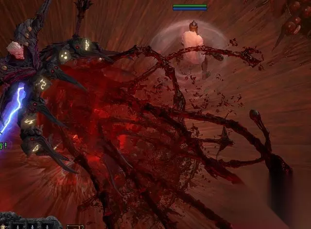 第二章的第一个比较强一点的BOSS 技能一:雷切 (费德利塔斯用一根又粗又大的不知道什么玩意的东西对你进行打击,其实就是闪电打击~~)