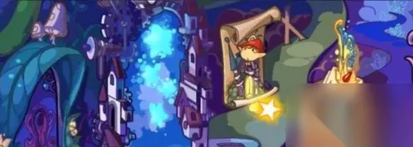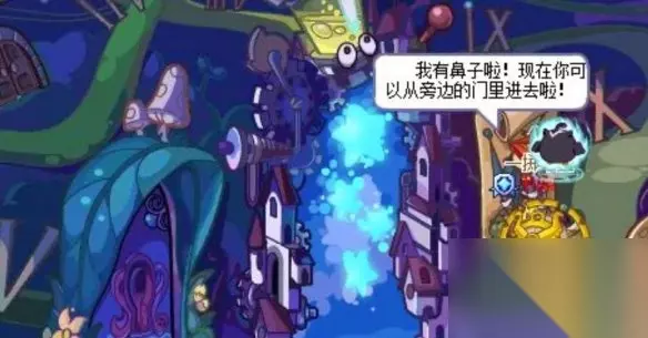 4、进去之后,在幽暗空间入口用星星魔法击打火炉,然后会掉落一个红色的鼻子,给旁边的木偶匹诺曹装上。