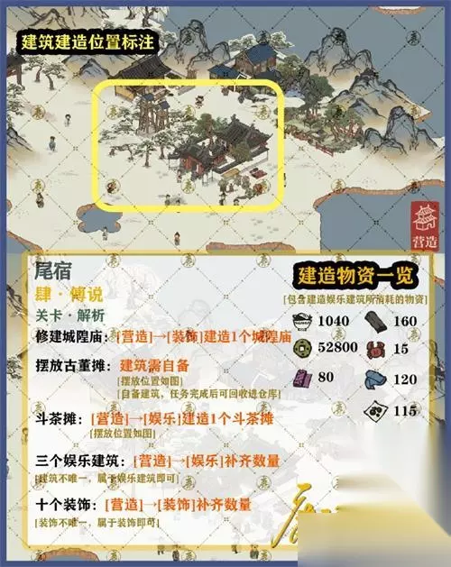 7.关卡中需要的自备建筑,在完成任务后可回收进仓库,尾宿是东方苍龙第六宿,包括五个星官(尾,龟,天江,傅说,鱼),共21颗星。 这就是江南百景图尾宿怎么过,希望对大家有所帮助,更多游戏资讯请关注233乐园,快去试试吧!