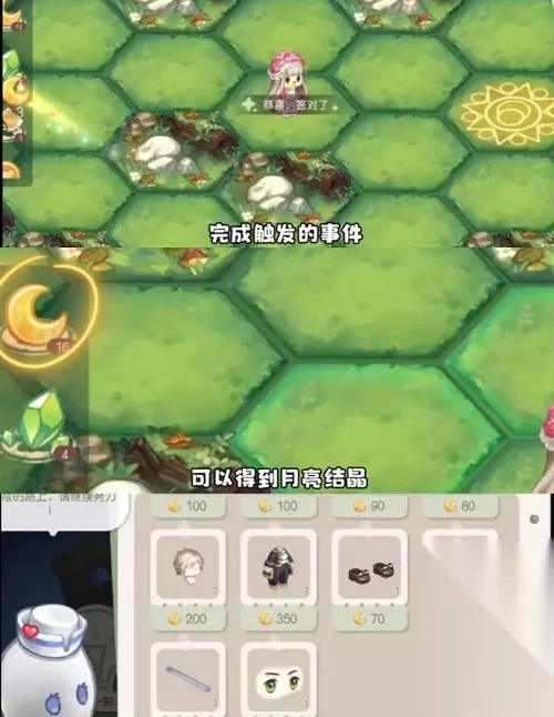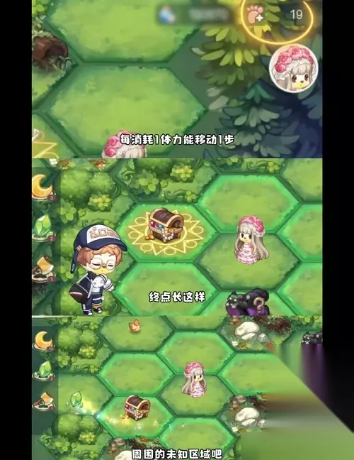 5、进入探险!每消耗1体力能移动1步,终点是魔法阵上有一个宝箱有多余的步数可以去探索周边的区域,获取更多月亮结晶(可兑换时装)。