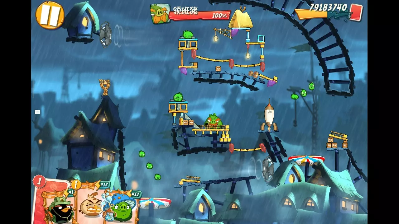 今天更更愤怒的小鸟2,战栗国王猪第三关只用泡泡橙在最后一个房间里一鸟KO