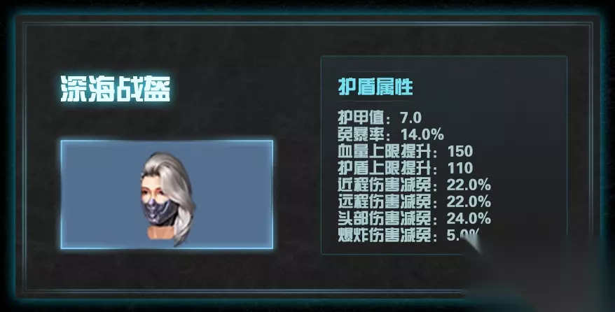 深海战盔护甲属性图文展示 1.深海战盔 高级的头部护具。 大量属性加成,提供更好的防护效果。