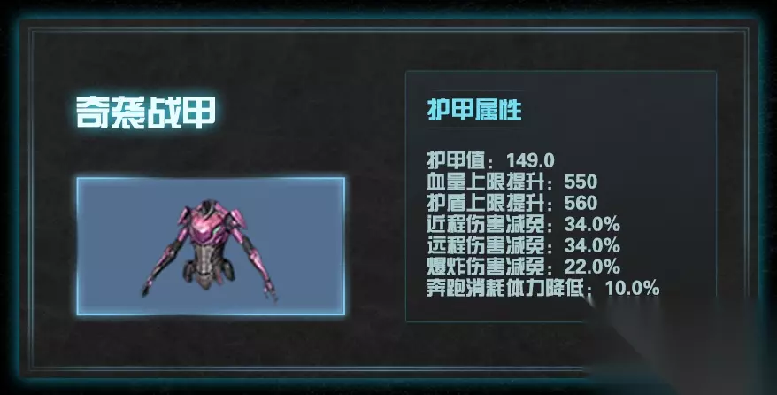 3.奇袭战甲 较深海战甲属性值微提升。 拥有涂装特技精工名牌,提升大量的护甲和血量。