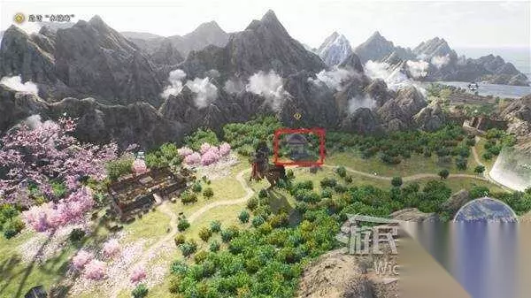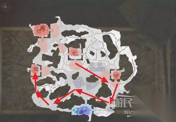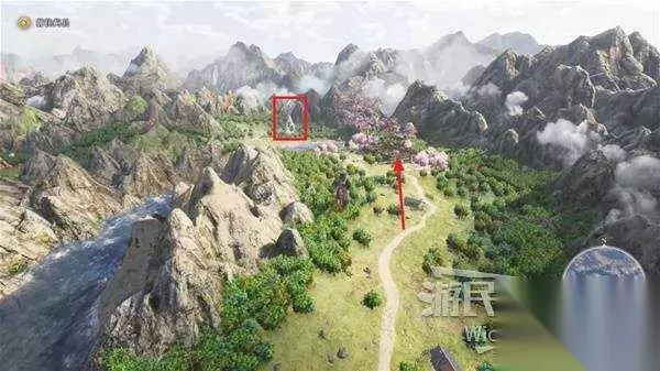 地图左上角的战场会触发烟消云散效果,需要破坏区域上方多边形位置的香炉。 跟随箭头从区域下面的位置绕上去,中间是一个特别大的高台,没法直接过去。