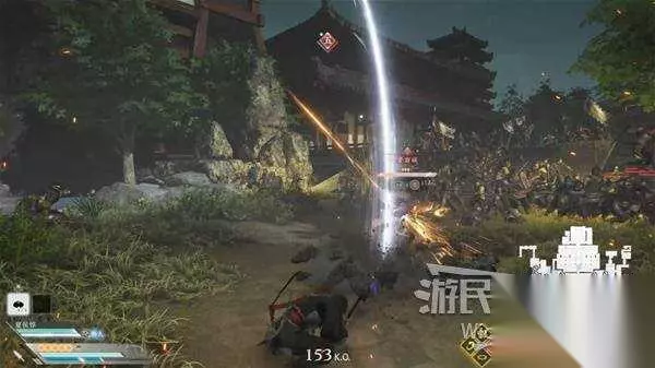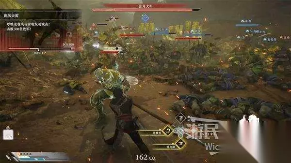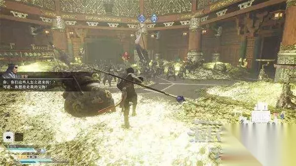 此时会不停触发【黄风天雷】效果,需要击败三百名敌军才能破除,天雷的伤害很高,看到左上角出现效果时立刻开始狩猎小兵。 入口两侧有不少罐子,打碎后掉落肉包可以回血,状态不够及时脱离战场打罐子。