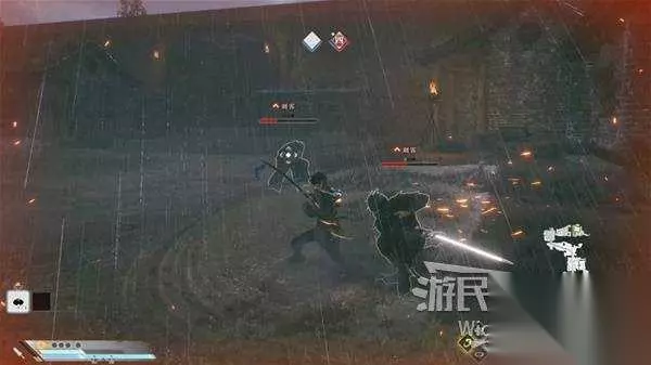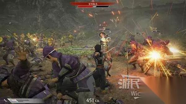 将城墙前方的士兵干掉后,会有一个BOSS血条的官兵队长从城门里出现,将他干掉完成序章的战斗,与关羽在篝火旁交谈,进入第一章。