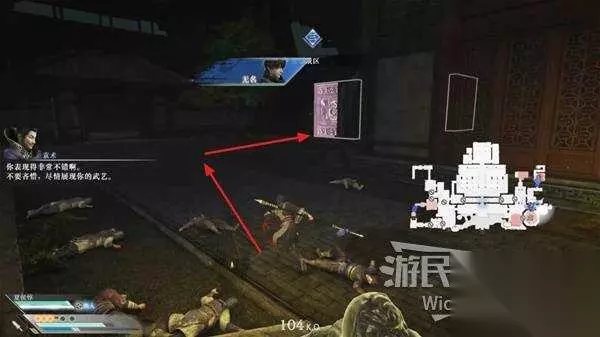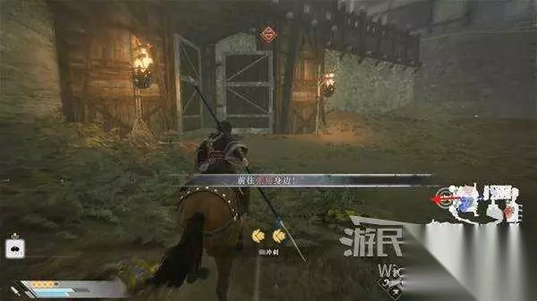 第二章-十常侍之乱攻略 来到虎牢关门口,与旗帜互动进入战斗,开局直走消灭一波敌人来到一个大房间,开启灵鸟之眼看左边,通过暗门走到中间的院子里。