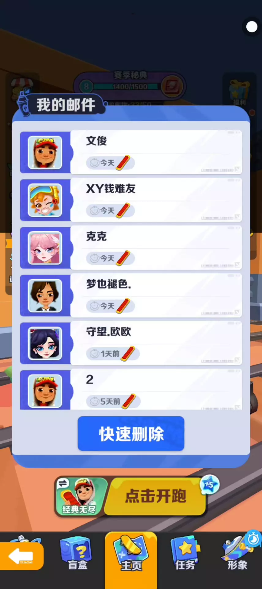 地铁跑酷盲盒。经过深思熟虑后也是准备使用大保底拿下这个人物了