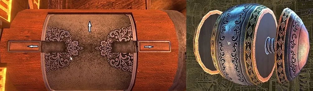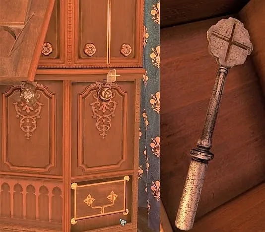把这部分拉下来,另一尊雕像就会滑下来。