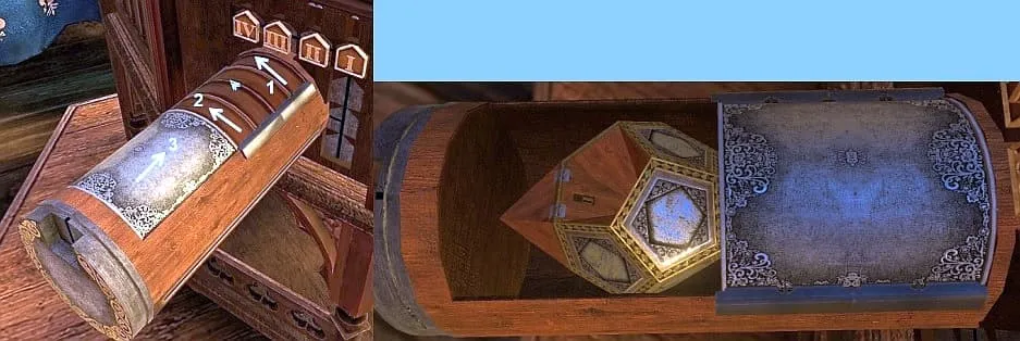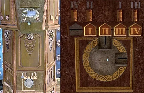 取出物体,点击移开。镜头缩小后,圆柱体滑回内部。 你不由自主地再次转向塔的正面。