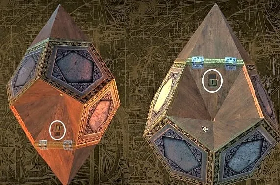向左走到 6 角孔处,将十二面体拖向它。