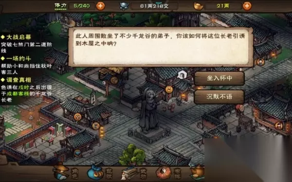 烟雨江湖寻秦记任务攻略 想知道烟雨江湖寻秦记怎么触发?触发不了怎么办?首先要在上下载【烟雨江湖】这款游戏,通过小编的烟雨江湖寻秦记剧情任务攻略,可以获得更多隐藏奖励哦! 烟雨江湖是一款武侠题材的RPG游戏,游戏是采用了2D卡通风格、画风简洁且新颖以及最为经典的水墨风格,将江湖世界打造的惟妙惟肖,沉浸式武侠玩法带你体验更多精彩的玩法。烟雨江湖单机版最新手机下载后各种各样的武器,装备,秘籍可以收集,满足你的收集癖。地图场景也丰富多样,在加上精彩的剧情,为玩家带来最为舒适的游戏体验,惩恶扬善,匡扶正义,快来游戏里成为最强玩家吧!