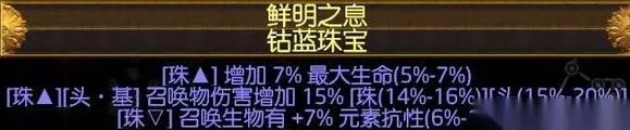 天赋里的珠宝7个,最大生命(一定7%,不然后面生命达不到6000),召唤生物伤害,其他的如果抗性没满就补抗,其他的召唤生物抗性,召唤生物生命都可以,为了提高幻化守卫的生存