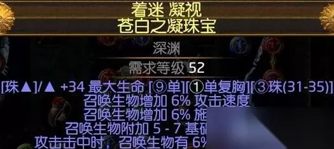 珠宝 深渊腰带的珠宝1个选择这个,高生命+召唤攻击速度+致盲(尽量最高的6%),别的无所谓
