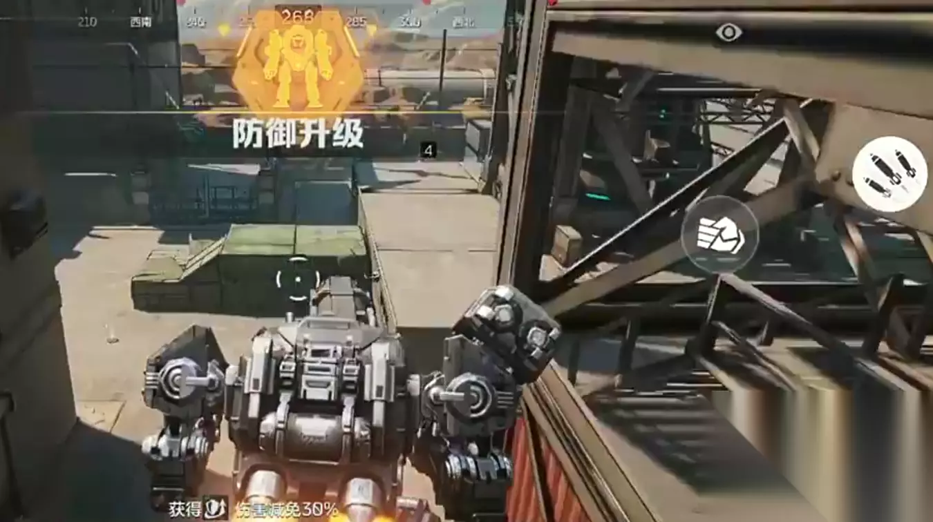 六、实战技巧在实战中首先要做的就是快速定位敌人,这也很简单,在我们受击的时候屏幕上会显示红色的小箭头,它会直接告诉我们敌人所在方向以及大致的位置,一旦受击我们就要立刻将视角调整到该方向,减少被偷袭弱点的风险,这样子存活的概率也会变大,此外由于机甲过大,当我们和敌人处于一个特殊角度时,敌人能看到我们的脚部,而我们是看不到敌人的,此时建议跳到第2层进行移动作战;当我们的弹药耗尽时,地图上会不定时刷新出一些补给包,靠近就可以拾取,拾取后会恢复一定的生命值,以及备弹等,建议新手可多多游走观察,最后地图上除了这些补给包,也会给人类阵营刷新出大杀器,其中伤害比较高的有投掷手雷和火箭筒,火箭筒可以点击冲刺左右来回移动躲避,投掷手雷可以跳跃到空中躲避。