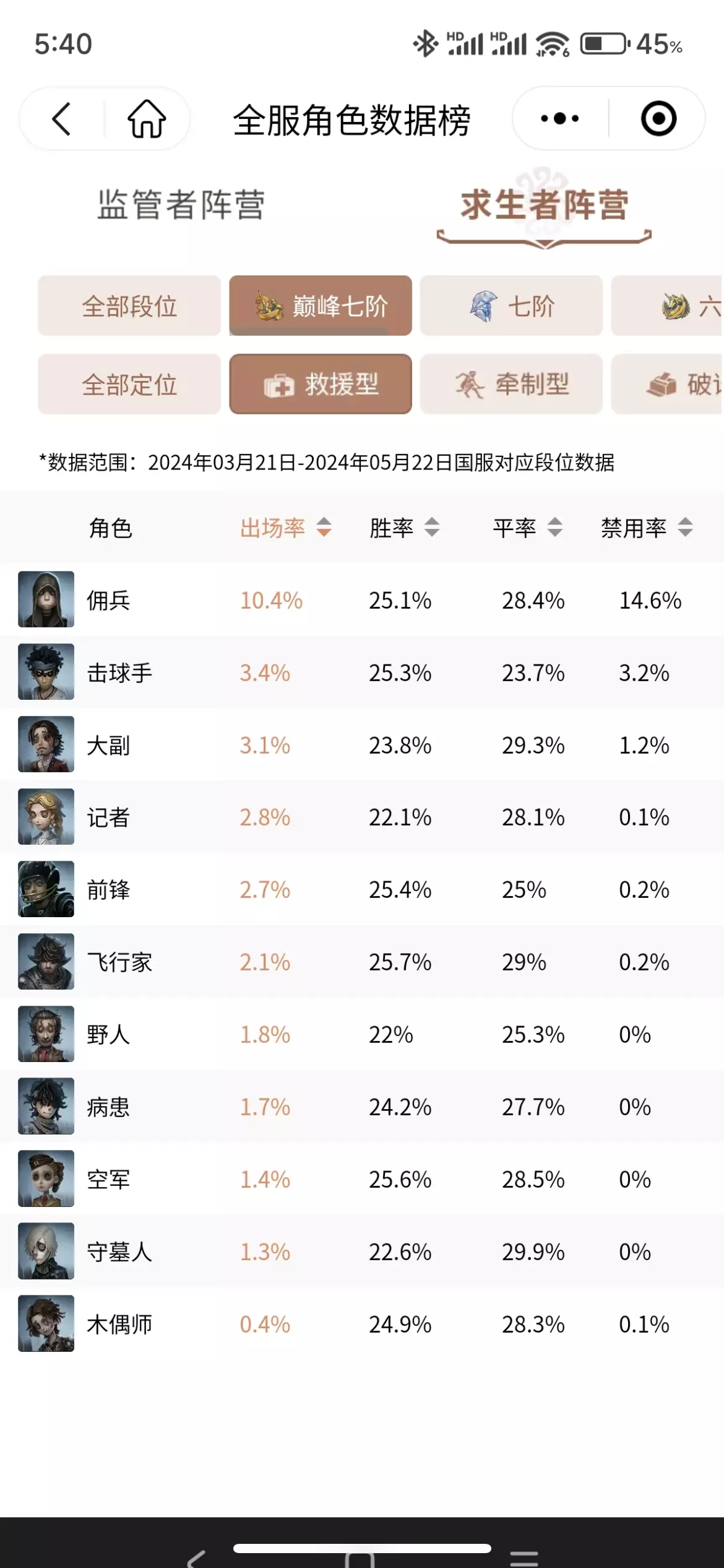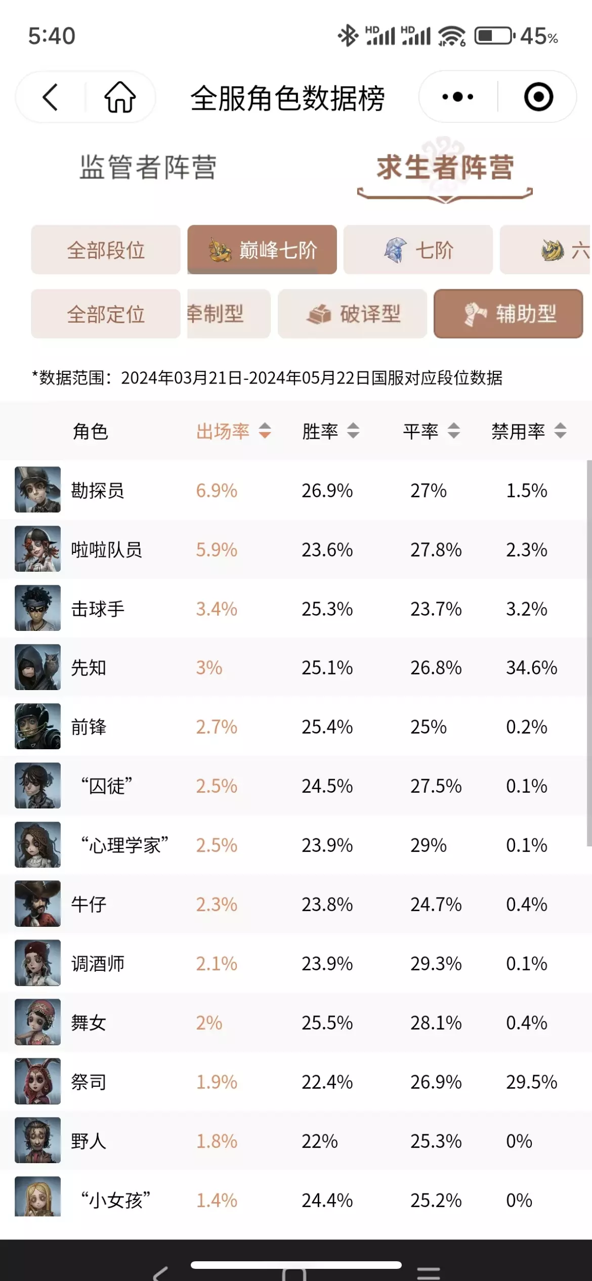 大家好,我是18年开服入坑的单排独狼一枚。上一期我们讲了如何运营,这期来讲如何混分。单排就算输也没关系,通过混分也能将我们扣的分数降到最低。话不多说,直接上干货! 首先我们来看一下第五排位的加分机制:求生者得分从高到低分别加4-1分,单人逃脱,地窖逃生,牵制时间110s,破译100%且牵制时间90s,破译100%且有效救人2次,破译进度250%,终止连败。 了解完加分机制后,怎么样才能加更多分呢?很简单:溜得久且活得久。一切混分方法都是围绕着这句话进行的。 1⃣️ 选择好上分的角色 首选救人位和牵制能力强的辅助位,选救人位的原因:自保能力强,一般不会开局被首抓;救完一次人后面半血可以去专心破译了,这样活得久是吧;补好状态还可以救第二波人,如果贯彻电竞精神,最后溜鬼时长90s以上基本是没啥问题的。推荐佣兵大副飞行家。 选牵制能力强的辅助位的原因:能溜能修能帮助队友无debuff。典型代表:勘探、古董、拉拉、先知、祭司、教授、心理。对不起你游三体人实在太多了。魔术调香不建议在高阶段选,因为他们即使溜鬼强但对团队的增益很少。技术好的玩勘探古董击球手保队友,祭司心理学家拉拉队员这些好上手。 为啥不选修机位,因为修机的收益实在是太低了。等你辛辛苦苦修完一整局的时候,最后发现自己的加分最少。还有柔弱鲜美多汁的修机位也是监管的第一目标哦。 2⃣️ 区选也有讲究 自保能力弱的白板角色,一定要选大房或无敌废墟这种好溜鬼的地方,不然会成为监管的自助餐。而自保能力强的选外面,在区选中尽量不要使监管选梅子堡的队友附近。 3⃣️ 如何能溜得久且活得久 及时找队友补充状态,翻宝箱补充道具。不过当监管追队友的时候请专心破译哦 当一名苟皇,苟住。当队友发监管者转移目标的信号时一定要留心,选择提前拉点或者躲藏 看情况别救保平,实在是赢局/平局无望的时候可以卖了,如果没道具了被打双倒还是挺亏的 4⃣️ 电竞精神 如果场上还剩两个人的话,别只想着修机了,快想想如何混分吧。如果在追别人,继续修机凑够250%有加分。队友倒地了,直接出发去找地窖在旁边蹲。 如果监管者执意要四杀,那么就溜到倒地为止,这样我们后面的演绎分数也是最高,牵制90s以上也能加分。 #第五人格#第五人格排位 #第五人格单排#第五人格上分攻略#第五人格上分#游戏分享 #游戏日常 #第五人格心跳特辑#第五人格新手攻略
