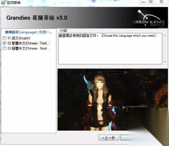 完成后,你在选中他会发现第二个按钮变成向左的红色,卸载的时候点一下就可以,下面的红叉点一下可以删除mod文件,同样的方式,我们把服装mod也装上 有的mod会有一些设置界面弹出,根据自己的喜好设置就可以,比如是英文还是以汉语, 比如这个随从mod就出现了,我们选择汉语