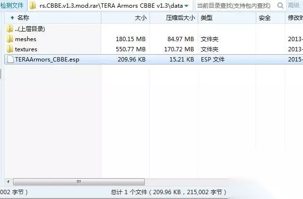 前期准备工作完成。 下面来说一下mod,什么是mod,MOD是英文单词modification(意为修改)的缩写,汉语音译作“模组”,也称游戏模组,它是游戏的一种修改或增强程序。 游戏模组就是将电脑游戏中的道具、武器、角色、敌人、事物、模式、故事情节等作出修改,又或是加入新的道具及事物,多见于第一人称射击游戏。 上古卷轴的mod网上下载的大部分都是压缩的rar或者zip文件,里面一般是esp之类的文件,比如这个