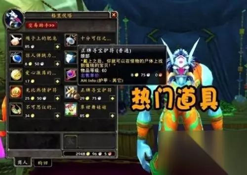 1,格里伏塔。在沙塔斯城坐标(65,68)的位置,我们就能看到一个名为格里伏塔的巨魔商人,该商人的名字下方还有一个特殊头衔——绝世宝物商人,第一次看到他还以为真的会出售什么稀奇珍贵的东西,但是打开他的出售物品,发现大部分都是些华而不实的白色物品,但是这些物品名字以及文字描述倒是很华丽,其中正牌寻宝护符当年70级被很多玩家作为摸蛋刀的玄学物品。