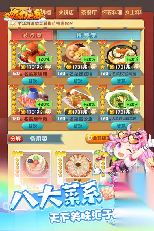 高速下载 普通下载 6、《魔幻厨房》 魔幻厨房是一款模拟经营和角色扮演相结合的游戏,游戏里大家要收集各种有着高超厨艺的美丽小厨娘,根据顾客们的喜好来制作各种菜系的美食,其中就有咖啡,要给喜欢的客人调制出馥香浓郁的咖啡,赢得好评。
