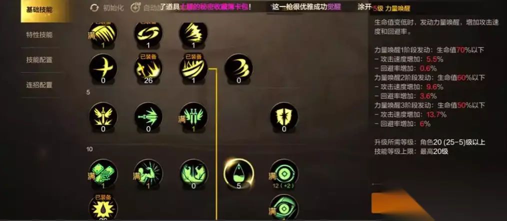 最后是特性技能,思路很简单,加满大崩和满血剑,然后点一级怒气和一级鬼斩,愤怒可以让我们的怒气、大,还有血剑对出血敌人造成额外的伤害,所以我们的特性点这三个是最合适的,这一套就是目前狂战士伤害最高的一套加点,无论是世界boss还是团本都会非常的好用,但如果你是刷塔或者打觉醒迷宫,就可以考虑点上毁灭、抗具和小吸。