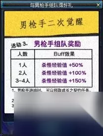 4、男枪手组队奖励 活动期间,与男枪手组队通关地下城可以获得杀怪经验加成!