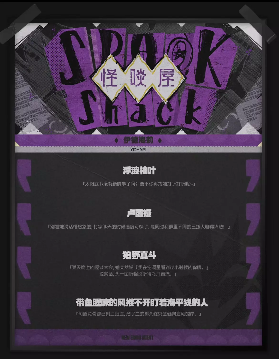 代理人档案丨伊德海莉 「真希望所有的故事都没有结局,那样我就有了不停翻页的勇气。」 伊德海莉 「故事是作者对事实进行的浪漫侵蚀。」 「无论是言之凿凿还是天方夜谭,和真实的距离并不影响故事的好坏。」 「违和的水位总会随情节的展开退去,请放心地进入我的叙事吧~」 #绝区零 #绝区零创作者激励计划 #绝区零攻略 #绝区零攻略杂谈 #绝区零二创 #绝区零布可思议大冒险 #迟吟的浪涌 #绝区零版本前瞻 #绝区零伊德海莉 #伊德海莉