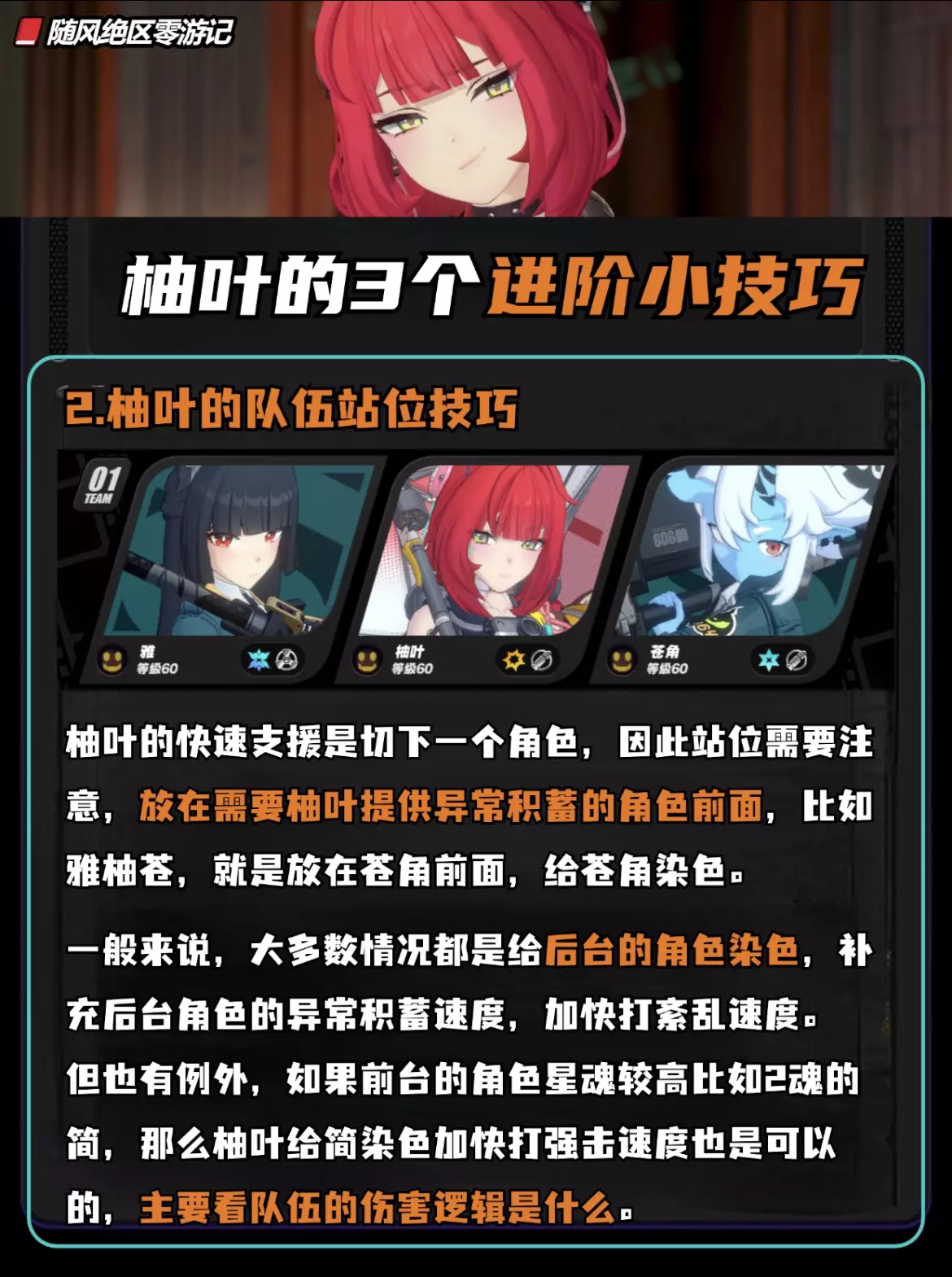 大家早上中午晚上好,我是随风 今天给大家带来的是柚叶的三个进阶小技巧 柚叶基础操作非常简单,但是也可以再进阶一下,这个进阶操作还经常能在危局中拿操作分 另外站位也很有讲究,要放在需要染色的角色前面 驱动盘带法逻辑也是有讲究的,需要根据不同队伍换 #绝区零 #绝区零创作者激励计划 #绝区零攻略 #绝区零浮波柚叶 #勇闯游戏岛